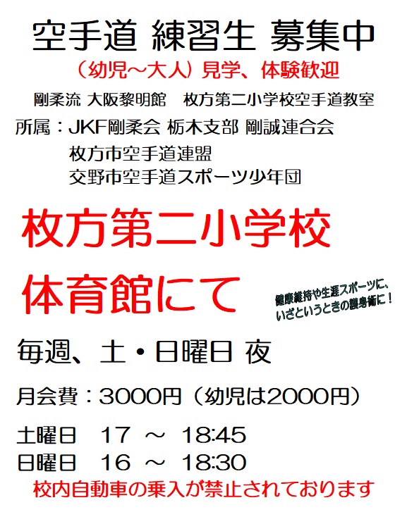 市内最安会費 交野市岩船小・枚方市さだ小・第二小で活動 私市小・倉治小学校生や中高一般もいるよ