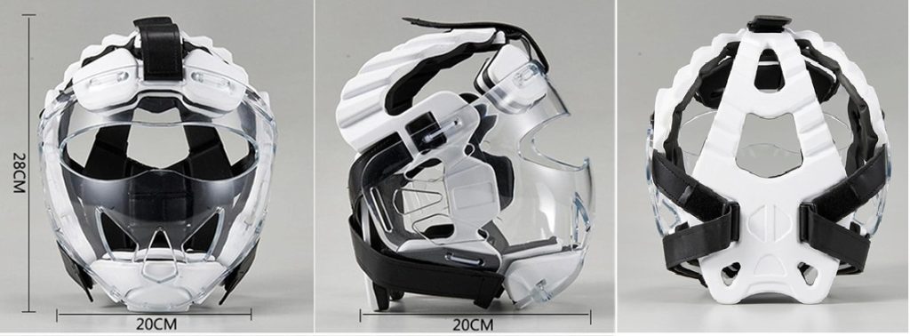 9.装着固定ベルトを側頭部から頬部下に変更(組手時のベルト外れが減少)