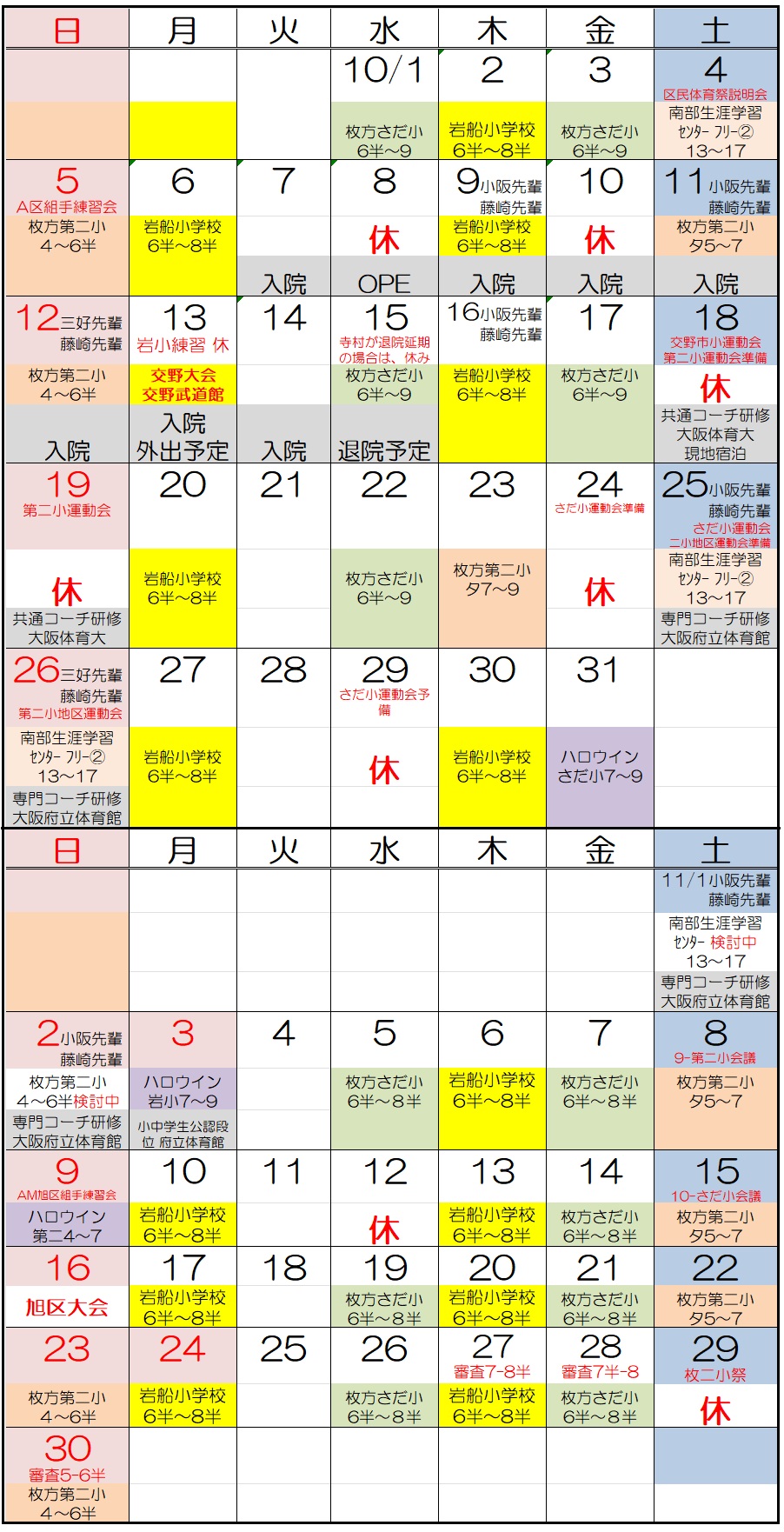 01 練習日・イベントカレンダー(10/5更新)